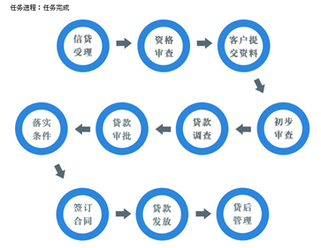 實(shi)訓主(zhu)體(ti)分五類(lei)流程:短期貸(dai)(dai)(dai)(dai)(dai)款、長期貸(dai)(dai)(dai)(dai)(dai)款、票據貼現、個人(ren)住房抵押貸(dai)(dai)(dai)(dai)(dai)款、個人(ren)汽車消費貸(dai)(dai)(dai)(dai)(dai)款。提(ti)供(gong)靈活(huo)的業務流程控制,包括信貸(dai)(dai)(dai)(dai)(dai)受理(li)、資格審(shen)查、貸(dai)(dai)(dai)(dai)(dai)款調查、貸(dai)(dai)(dai)(dai)(dai)款審(shen)批(pi)、落實(shi)條件、簽訂合同、貸(dai)(dai)(dai)(dai)(dai)款發放、貸(dai)(dai)(dai)(dai)(dai)后管(guan)理(li)等步驟。