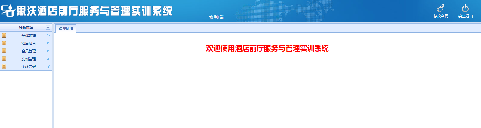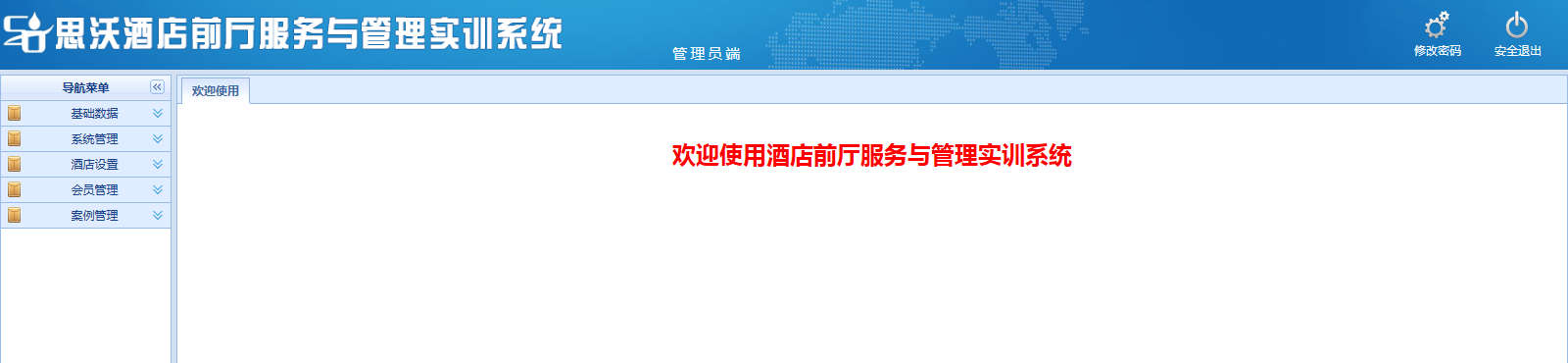 思沃酒(jiu)店(dian)前(qian)廳服務(wu)與管理模擬實訓(xun)平(ping)臺(tai)系統(tong)以學(xue)生(sheng)酒(jiu)店(dian)前(qian)廳工作(zuo)(zuo)崗位任務(wu)為(wei)(wei)基礎,以案例(li)動畫結(jie)合的模式開展情(qing)景(jing)模擬實訓(xun),學(xue)生(sheng)可在該教(jiao)(jiao)學(xue)軟件設置的虛擬酒(jiu)店(dian)環境中,完(wan)成預定、入住辦理、續住、退(tui)房、換房、會(hui)員(yuan)管理、故(gu)障報修、投訴處理、黑名(ming)單等相關案例(li)任務(wu)的操(cao)作(zuo)(zuo)。該教(jiao)(jiao)學(xue)平(ping)臺(tai)軟件可以逼真的體驗實際(ji)酒(jiu)店(dian)前(qian)廳工作(zuo)(zuo)的過(guo)程。本(ben)公司為(wei)(wei)了(le)更好滿(man)足高校的教(jiao)(jiao)學(xue)需求,也會(hui)根據高校的需求提(ti)供(gong)酒(jiu)店(dian)管理實訓(xun)室解決方(fang)案,