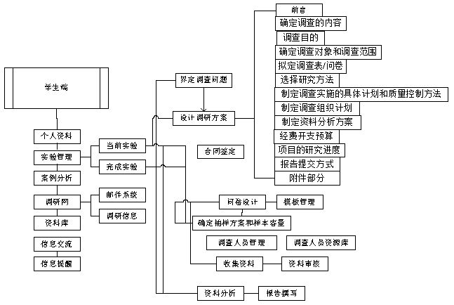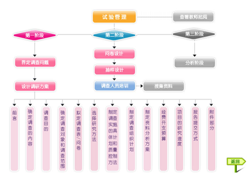 學(xue)生以教師設置(zhi)的(de)(de)(de)實驗要求為(wei)目標,以市場調(diao)查公司(si)總經理的(de)(de)(de)身份負責(ze)市場調(diao)查的(de)(de)(de)整個過程(cheng),根據系統的(de)(de)(de)操作向導按(an)步驟、階段性(xing)完成實驗任(ren)務。確定調(diao)研(yan)課題(ti),設計調(diao)研(yan)方案、調(diao)研(yan)問卷、抽樣方案,培訓(xun)調(diao)查人員,搜集(ji)并分(fen)析(xi)資(zi)料。