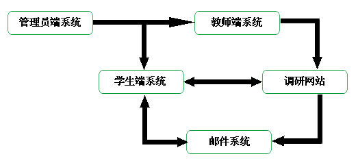 由管理員端(duan)(duan)系統、教(jiao)師端(duan)(duan)系統、學生(sheng)端(duan)(duan)系統、調研網站(zhan)、郵(you)件(jian)系統五大部分組成,各(ge)部分之間數據相互交流聯系。